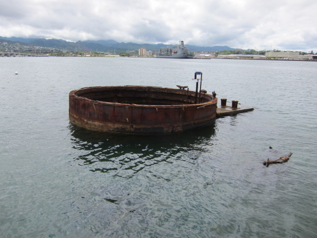 3、アリゾナ上陸後、沈没した部分、そこから流れ出る油、慰霊碑しかないので、7~8分で見終わる。やはりあくまでもお墓。