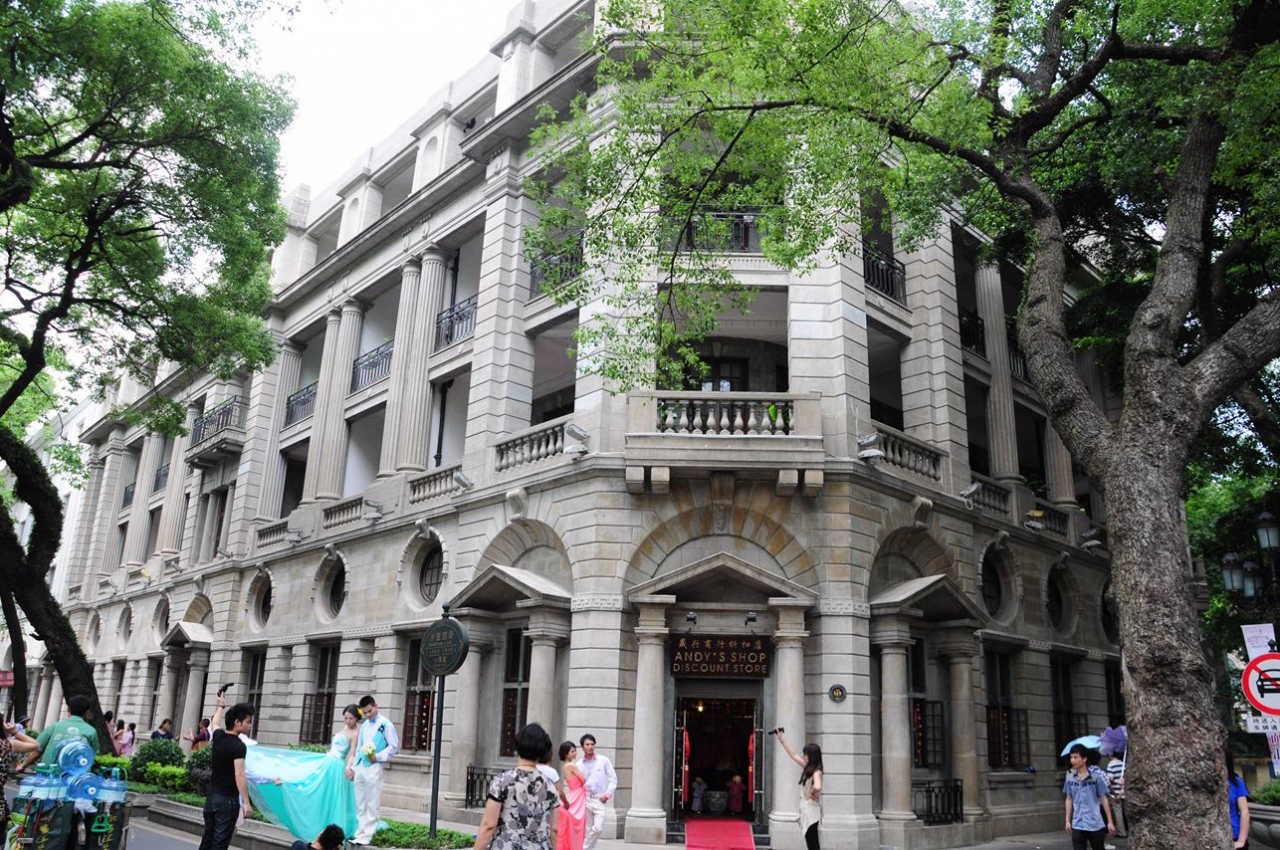 租界の町並み残る沙面は、地下鉄の黄沙駅からのアクセスが便利です。駅からでて歩道橋と橋を渡ると、沙面に到着します。沙面は外国の人々が建てた租界の町並みが残るエリアで、そういった建物を利用したカフェや土産物屋、ホテルがあります。町歩きに疲れたら是非ここでカフェに入って一休みすることをお勧めします。スターバックスもありますが、ほかにも個性あふれるカフェが数軒あります。地元の人たちに人気の結婚写真の撮影スポットでもあり、結婚写真を撮影する新婚さんを数組見かけました。