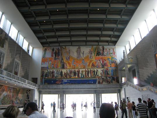 ホールにあるヨーロッパ最大ともいわれる大きな油絵が見ものです。ノルウェー人の文化や営みが描かれています。ホール横の絵はドイツ軍占領下におかれたときの苦しみを描いたものが多く、当時の国民感情が表れているかのようです。