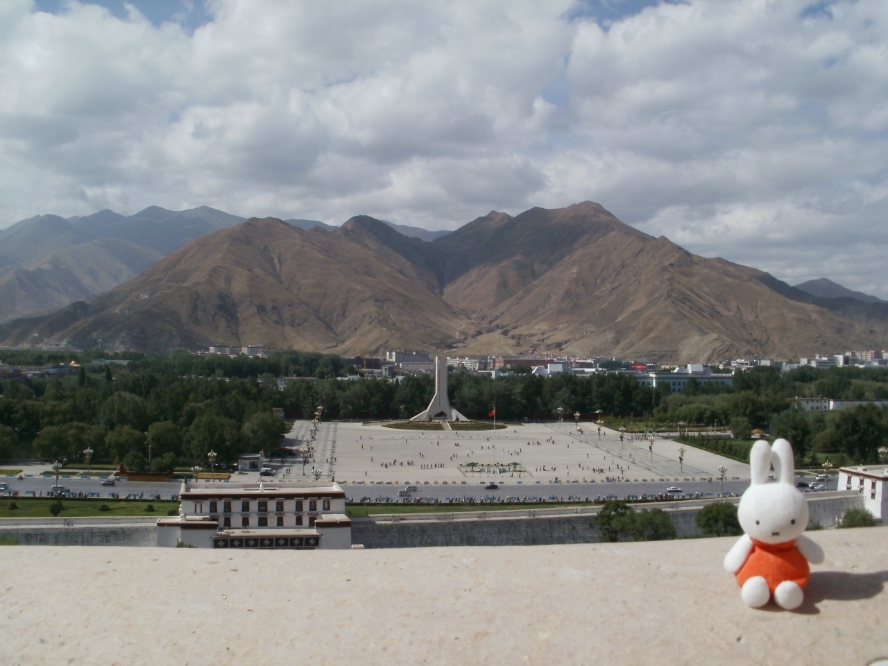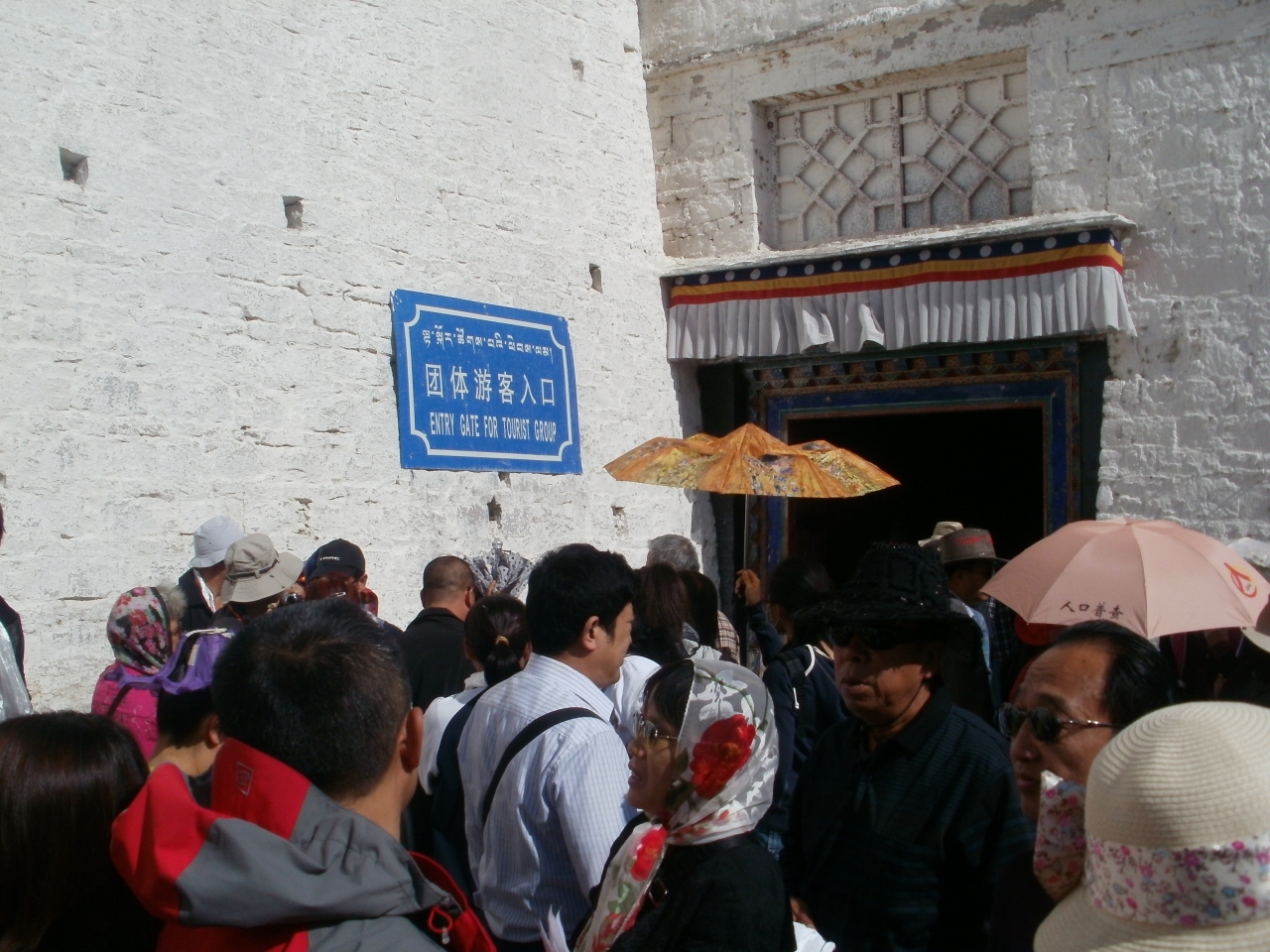 ポタラ宮に着いたら、安全検査のために並ぶのですが、長い列ができています。入り口前の記念碑で記念写真を撮る団体もいるので、そのグループをすっ飛ばせばすぐに入れました。