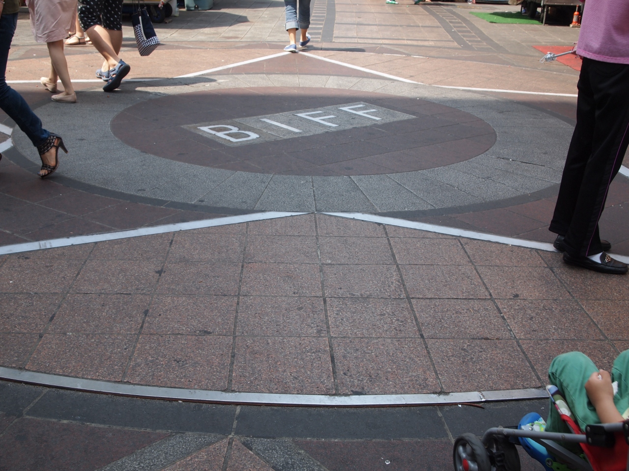 映画祭に参加した俳優や監督の銅板手形が道にはめ込まれています。