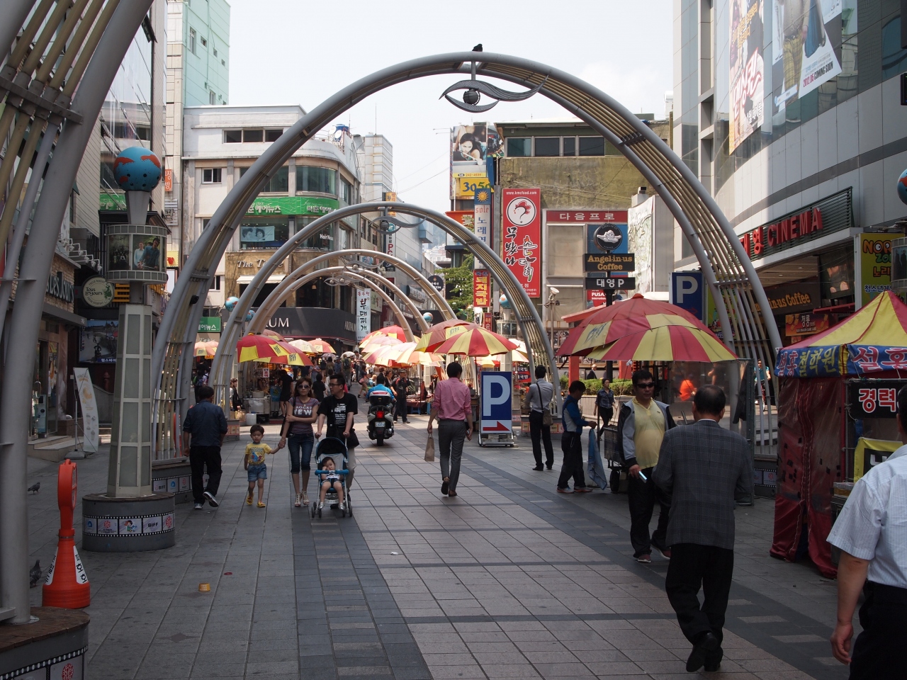 広場には人気のホットック屋やスルメなどの韓国らしいおやつ屋台が出ています。