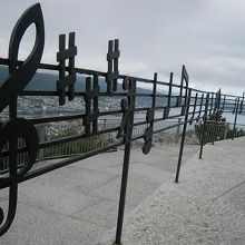 フロイエン山にケーブルカーで登り、歩いていると手すりのような所に、ト音記号や♯、♪等のオブジェがありました。手すりなのかそれ自体がオブジェなのか、よくわかりませんが、4分の3拍子の曲の楽譜のようです。何の曲なのでしょう??