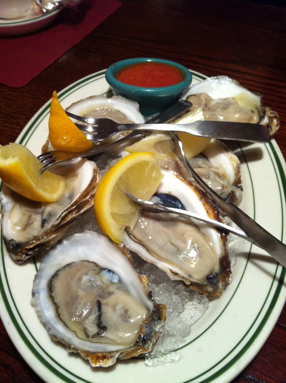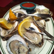 定番のクラムチャウダー、生牡蠣、ハンバーガー、アメリカンなデザートを食べました。