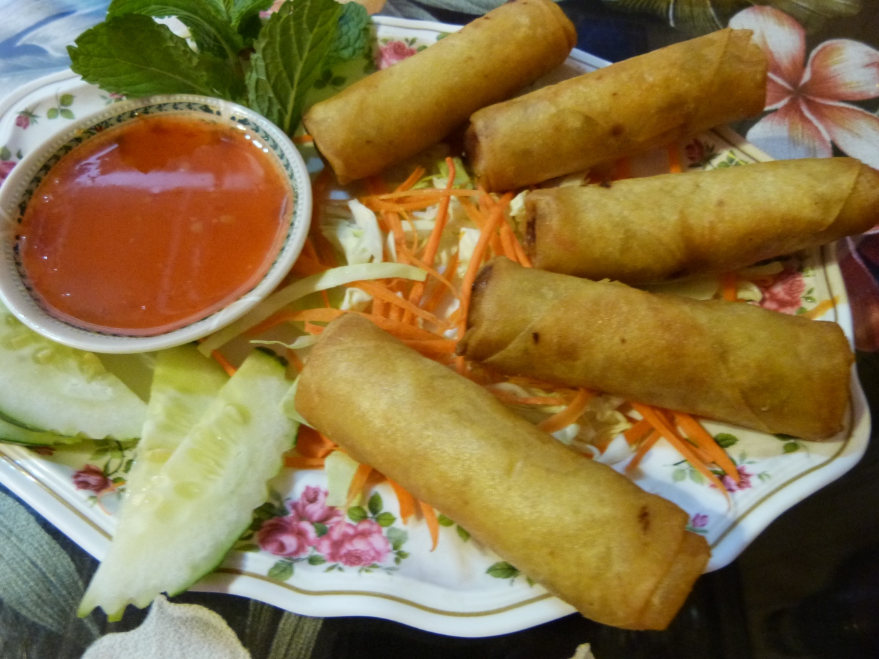 最初のオーダーは「春巻き」。ワイキキの名店「チェンマイ」と比べてはいけないと思いますが、全く別物です。日本でいえば冷凍の春巻きとそれほど変わらないお味。