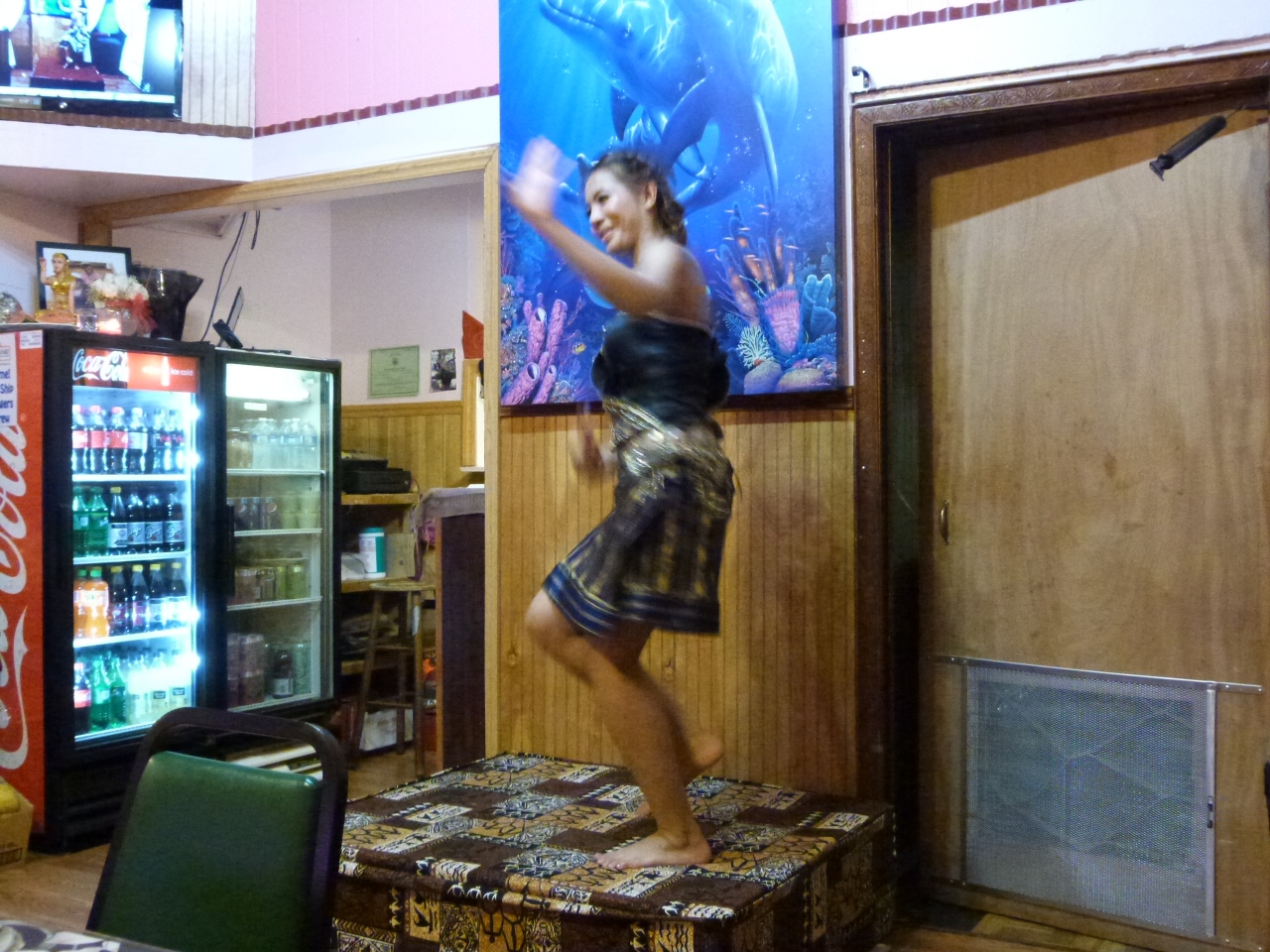 途中で店のオネエサンが、ちっちゃなステージで踊りを披露してくれました。