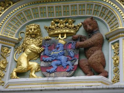 ブルグ広場に建つルネサンス様式の建物が、公文書館(一部)。現在、内部は自由ブルージュ博物館として有料公開されています。外壁に金箔の装飾、屋根にも金箔の銅像が立ち並び、小さい建物ですが、豪華な印象。残念ながら、この日はブルグ広場でイベントが催されるとかでクローズでした。入口上にあるくまちゃんとライオンの紋章がかわいいので見逃さないで!