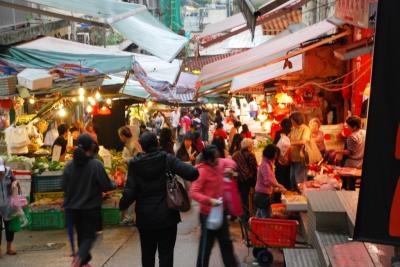 最近は香港でもスーパーマーケットがどんどん増えてきましたが、やはり香港といえば、活気溢れる青空マーケットが1番好きです!結志街には、青果やお肉屋さん、お魚屋さんなど、多くのお店が軒を連ねています。どのお店も元気いっぱい!買う方も元気いっぱい!観光客の姿は殆どなく、地元の方達の普段着の姿が垣間見えます。フルーツなどは、スーパーで売っているパック詰めのものより随分安かったです。