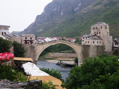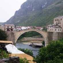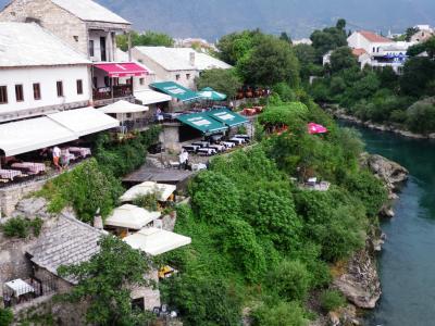 今は、静かに流れる碧く美しい川ですが、かつてここは内戦の激戦地になり、多くの犠牲者を出した場所。そんなモスタルの町の中心を流れる川が「ネレトヴァ川 」です。真夏でしたが、川の水量は豊富で、青?緑?なんとも表現し難い深い美しい色が印象的な川でした。透明度も高く、ゲリラ雨に遭遇するまでは、地元の子供達が楽しそうに泳いでいました。