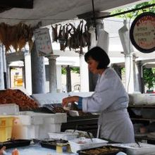 ブルージュの町を散策していて、偶然「魚市場」のある広場に!お昼近くなったこともあり、そろそろ店じまい...といったところでしたが、それでも活気の良さは万国共通。海に近いせいもあり、お魚の種類も豊富で、大きなエビが何種類も...。ヨーロッパにも干し魚があることを初めて知りました。ホテルに宿泊している方には無縁ですが、見ているだけで楽しいのでオススメの市場です。