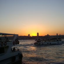 時間が合えば、夕日を眺めながらのクルーズが楽しめます。船内ではチャイ(紅茶)などの販売もあり、のんびりとヨーロッパ、アジアを眺める事ができました。船によってコースが違うので確認したほうがいいです。