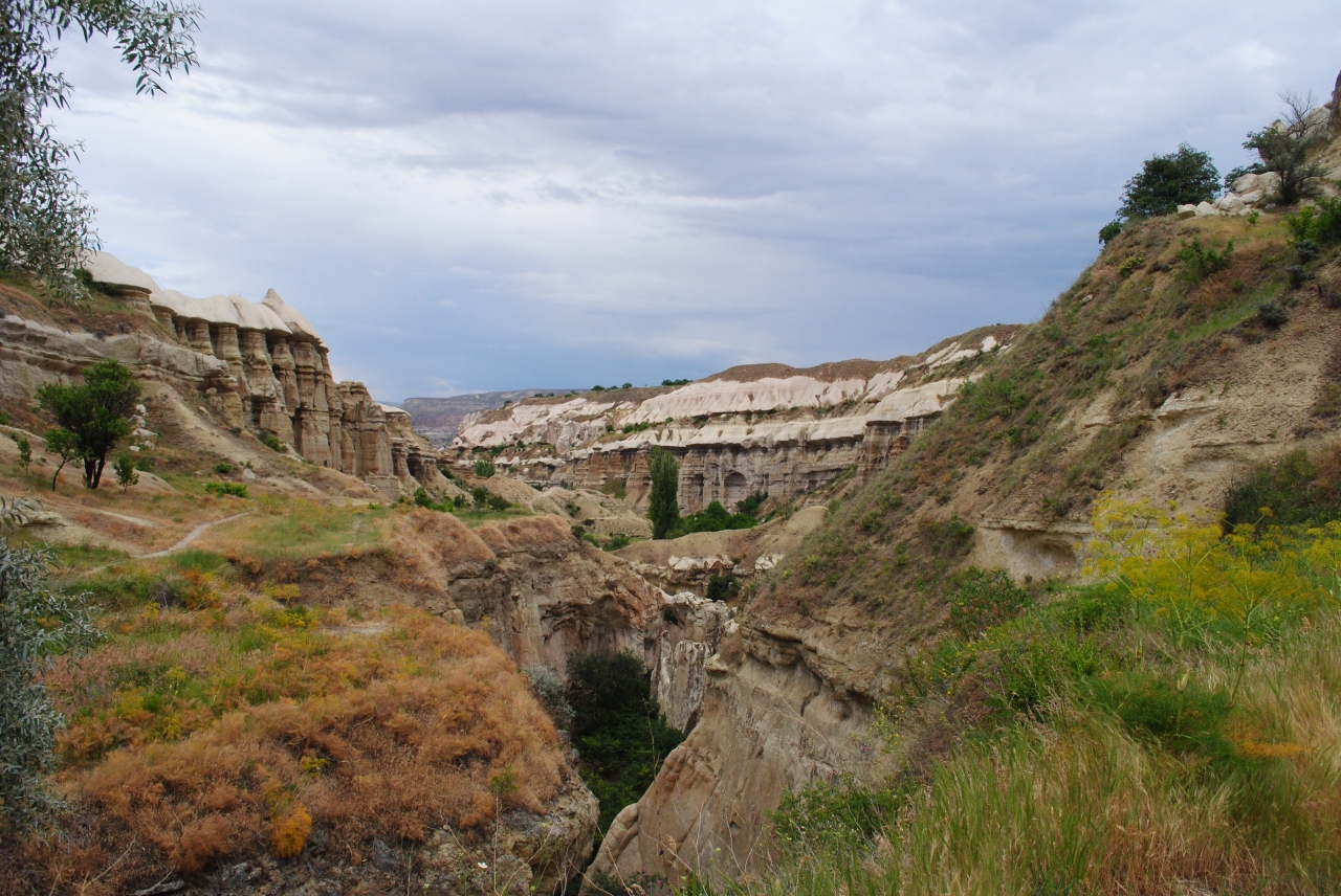 谷の周囲の岩にも掘られた家々が並んでいて、静けさのなか不思議な感覚になります。