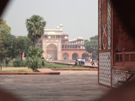 こちらはアクバル帝の霊廟です。アクバル帝のすべての宗教を受け入れるという考えが所々に取り入れられており、イスラム教や仏教、ヒンズー教などの建築様式を見ることが出来ます。矢張り赤砂岩の造りはとても印象的です。