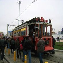 イスティクラル通りをタキシム広場からトゥネル広場まで走るチンチン電車のような路面電車が走っています。ノスタルジー・トラムヴァイといいます。地下鉄M2線のタキシム~シシハネ間とルートは同じですが、こちらの方がかわいらしい。