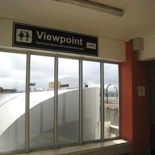 チェックインカウンターで手続きをした後、隣の建物内にちょっとしたカフェがあるようなのでのいったん建物の出入り口を出て左へ。建物のなかに入るとビューポイントへ続く階段がありました。エレベーター等がないので手荷物を持ったまま行くことになりますが…飛行機の飛び立つ瞬間が見られます。