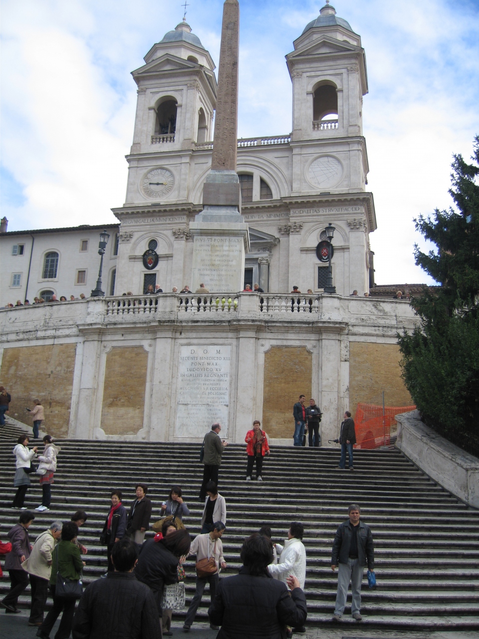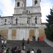 広場後方にはオベリスクとトリニタ・デイ・モンティ教会があります。
