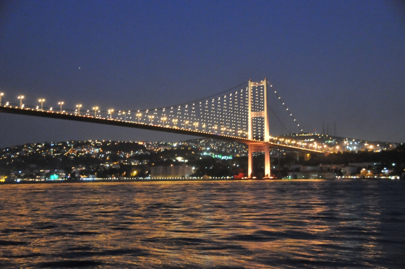 イスタンブールのアジア側とヨーロッパ側を結ぶ大きな橋です。オルタキョイ・ジャーミィのすぐ上にかかっています。夜になると美しくライトアップされ、時間によって色が変わります。夜のボスポラス海峡クルーズで眺めましたが、とても美しかったです。
