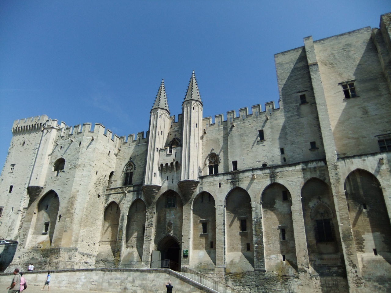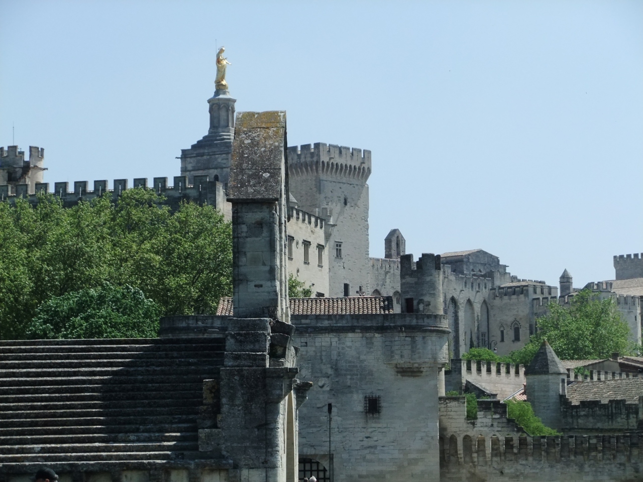 14世紀に建てられた司教館で、現在は美術館になっている「プチ・パレ」、12世紀半ばに建造されたロマネスク様式の「ノートルダム・デ・ドン大聖堂」、ヨーロッパの中世ゴシック様式建築物のなかでは最大級を誇る「教皇宮殿」などの世界遺産やオープンカフェに囲まれた広場が法王庁広場です。