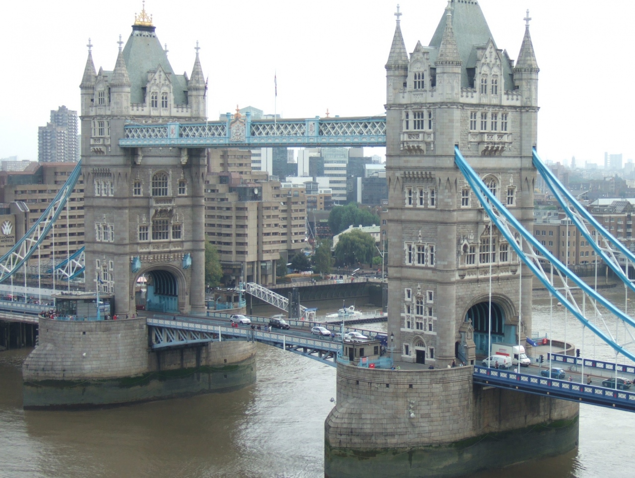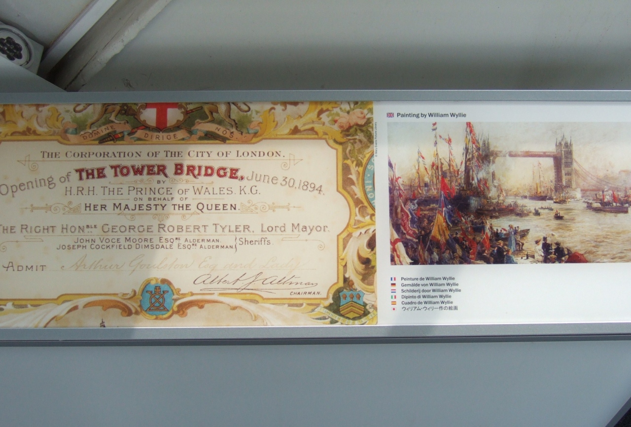 ロンドンの象徴として定番の観光名所となっているタワーブリッジですが、これとロンドン橋を勘違いしている人も居るかも知れません。タワーブリッジは、ロンドン橋の少し下流に作られた橋です。タワーブリッジの南側には、はね橋を開閉するためのエンジンルームがあり、建設当初の水圧式エンジンが再現されていて、タワーブリッジとの共通チケットを購入すると見学することができます。タワーブリッジの南塔と北塔を結ぶガラス張りの歩道橋が展示室になっており、タワーブリッジを含む、ロンドンの橋の歴史の展示がありました。また、ここからテムズ河両岸の街並みも見渡せました。