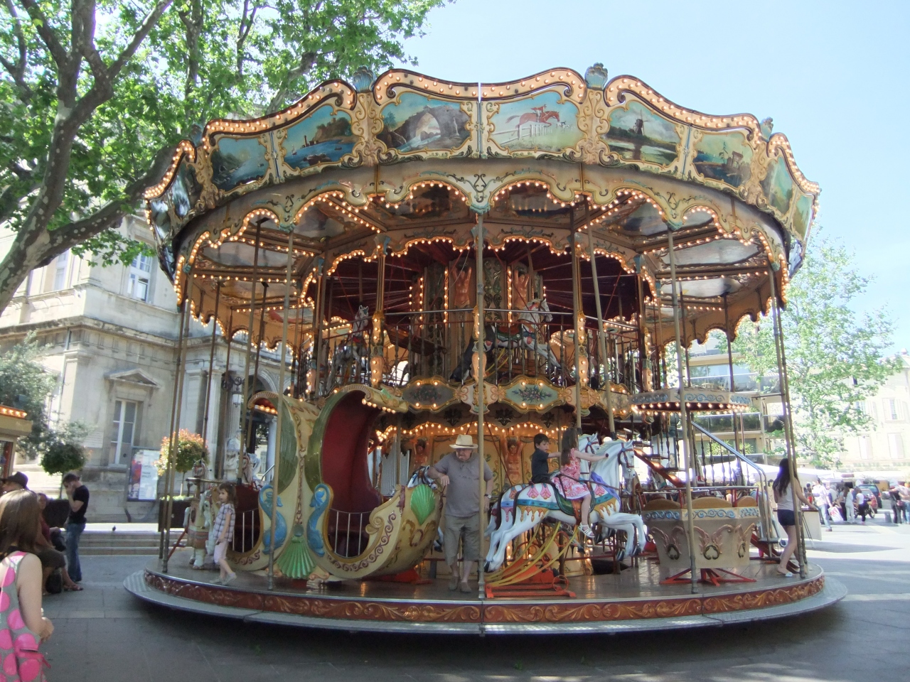 - 市役所と劇場がありますが、それよりもカフェの雰囲気が最高です。この時は移動式のメリーゴーランドがありました。