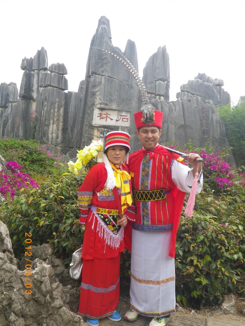 石林の彫刻のある石林勝景は記念撮影の人で一番混みますが、他は人も少なめでゆっくりと見ることができます。また、ここで10元でイ族のおじさん、おばさんが民族衣装の貸し出しをしているので、着用しての写真撮影もできます。