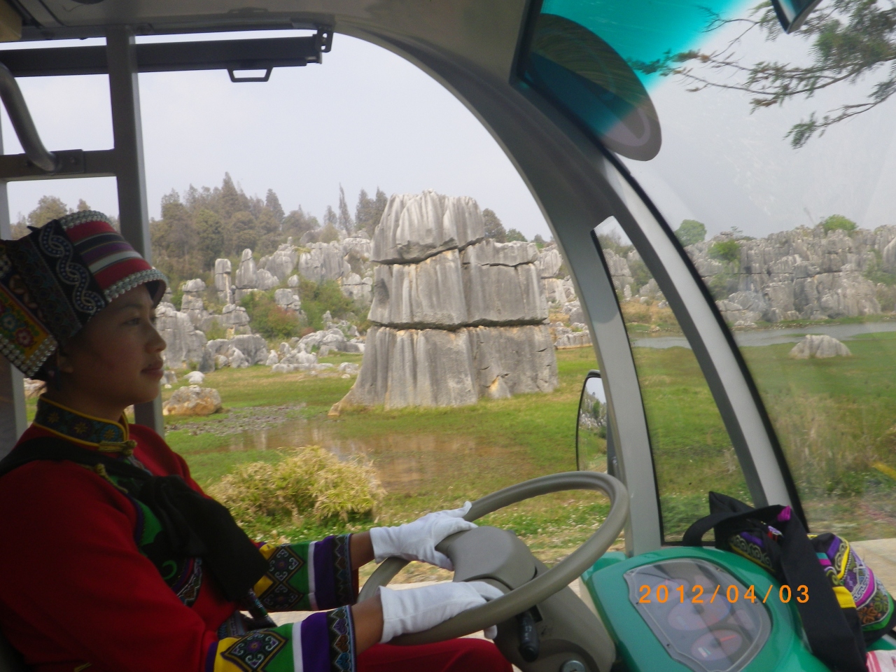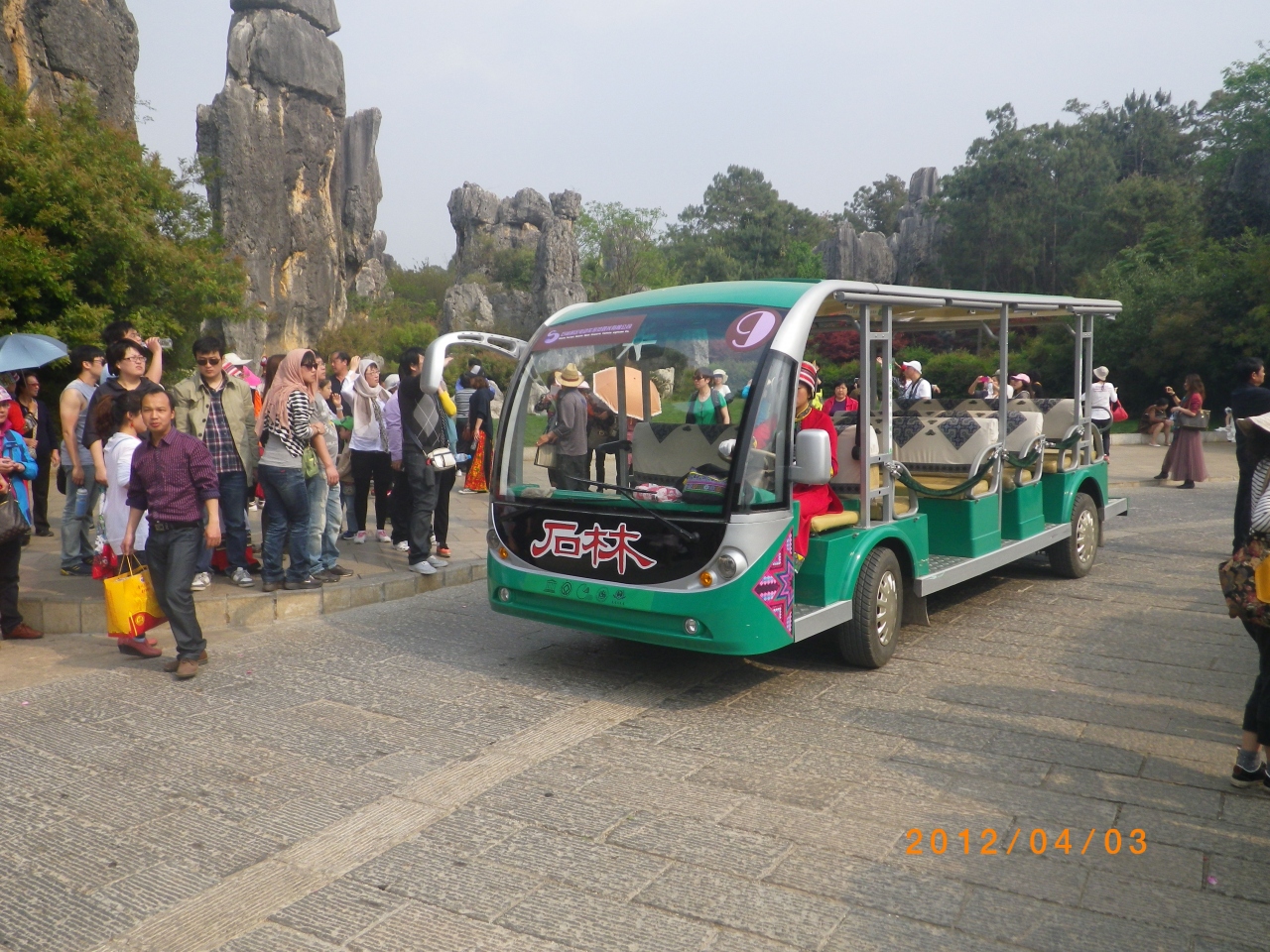 大石林風景区はちょっとしたハイキング。周りは電動カートで外から様子を眺める昆明から一日で満喫できる世界自然遺産です。
