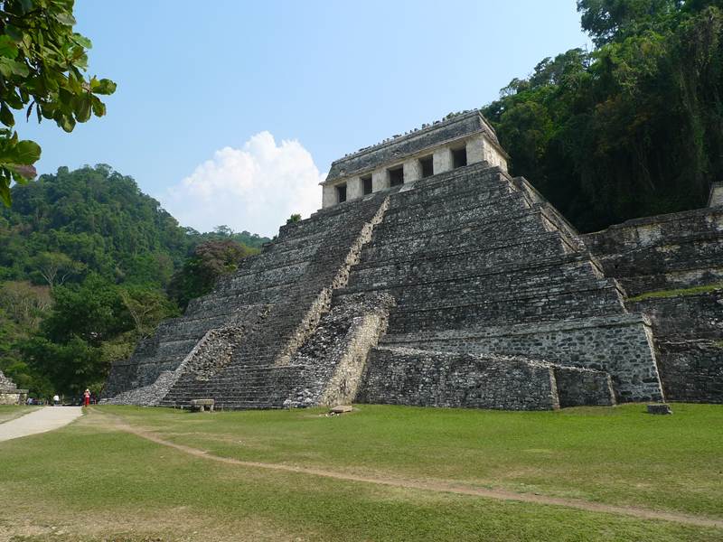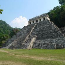 このピラミッドは登ることができません。そのため、碑文を確認することができずとても残念です。外観に装飾は見当たらず、無機質な感じがしました。碑文(出土した埋葬品)はメキシコシティ国立人類博物館に展示し、レプリカは遺跡内博物館内で見学できるそうです。