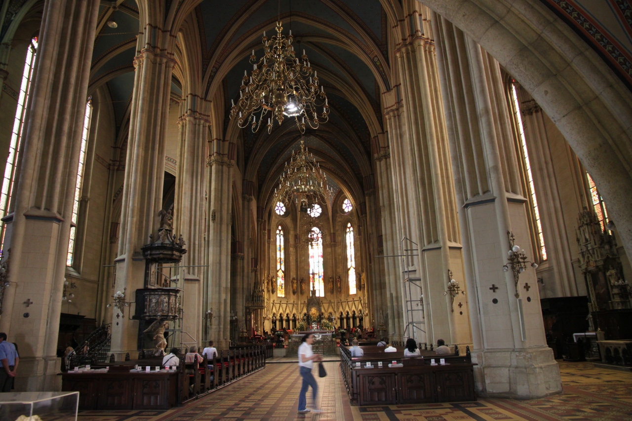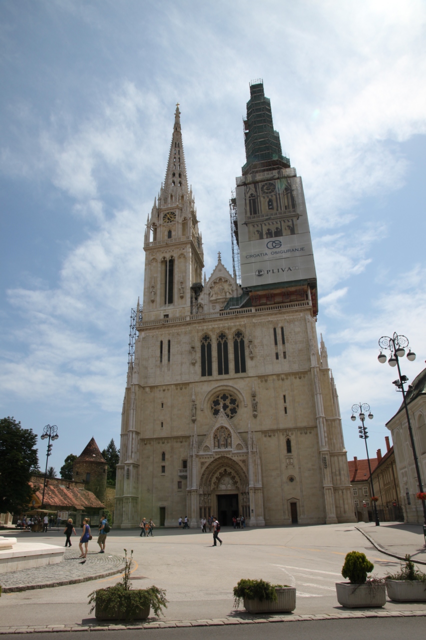 高い尖塔はザグレブ市内のあちこちから望むことができます。尖塔の工事はまだ行われていました。