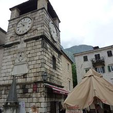 西の門からコトル旧市街に入ると「武器の広場」と呼ばれる広場があり、目の前に旧市庁舎の時計塔があります。時計塔の下には四角錐の形をしたさらし台があり、罪人と罪状を記した板を括りつけ、数日間さらされる、ということもあったようです。