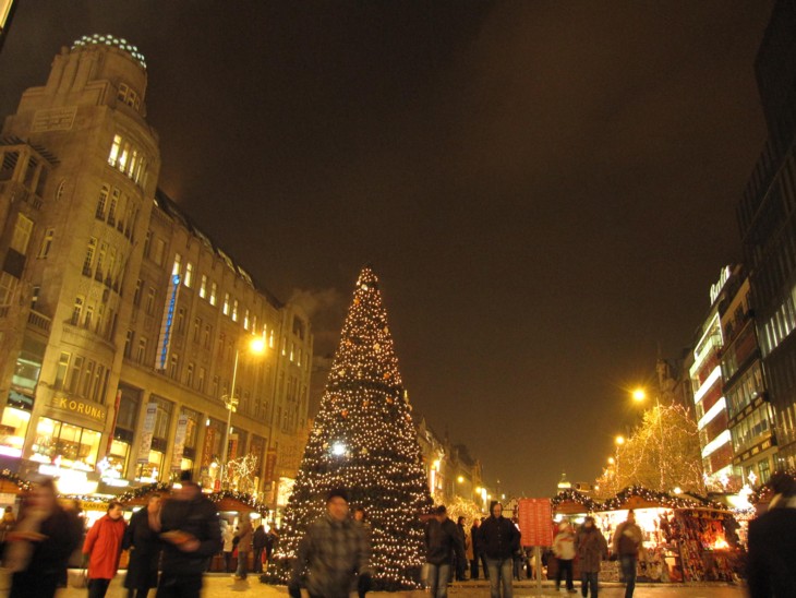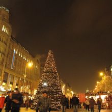 「プラハの春」で有名な広場です。12月だったのでクリスマスマーケットが開催されていました。市庁舎前の広場のほうがどちらかというと観光客向けのような気がしました。こちらはなんというか、地元の若者向き?ロックミュージックが流れ、衣服の屋台が出ていたりして、旧市庁舎前のクリスマスマーケットに比べるとあまりクリスマスっぽくなかったです。
