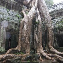 トゥクトゥクが降ろしてくれたのは恐らく裏門なのですが、人ひとりいない林の中を、しかも水流に足を取られながら歩いて行くのはちょっと不安でした。