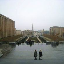 最高裁判所からレジャンス通りを抜け、ロワイヤル広場へ。そこから道路を下っていくと芸術の丘へ出ました。丘から見下ろす景色は素晴らしく、グランプラスの市庁舎の塔が見えます。さらに下へと進んでいくと手入れされた花壇や、おもしろい形のベンチがあります。天気が良ければ座ってのんびりしてみたかったな。