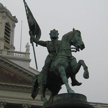 ロワイヤル広場の中央付近に、11世紀の第一回十字軍指揮者の一人だったエルサレム王となったゴッドフロア・ド・ブイヨンの騎馬像があります。