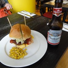 素材にこだわりを持ってるということでモスバーガーを引き合いに出してるようです。香港でハンバーガー?と思いましたが食べてみました。ハワイで食べたジューシーなハンバーガーには負けてましたが、ボリュームもあり、それなりに美味しかったです。ビールとよく合いました。」