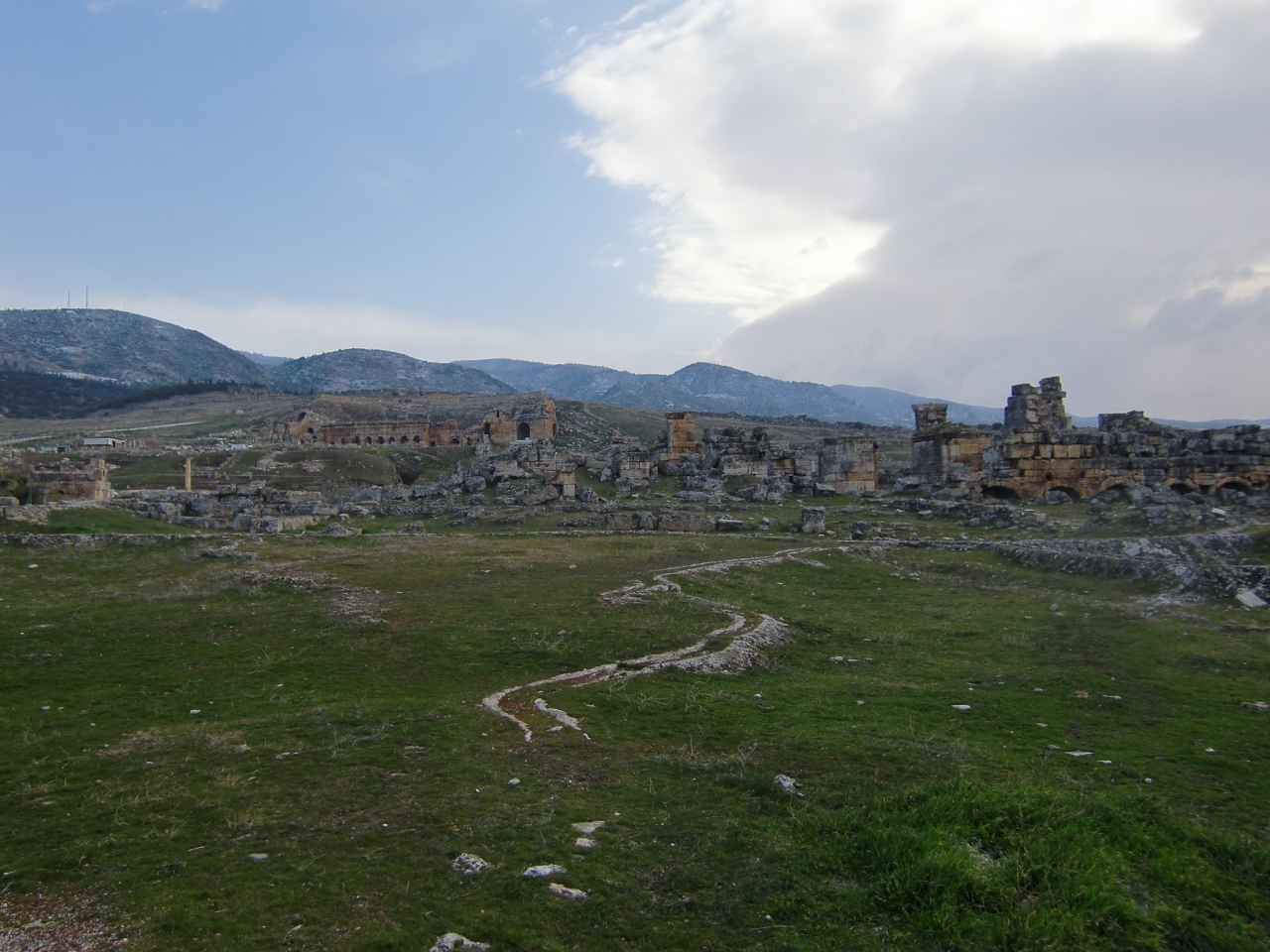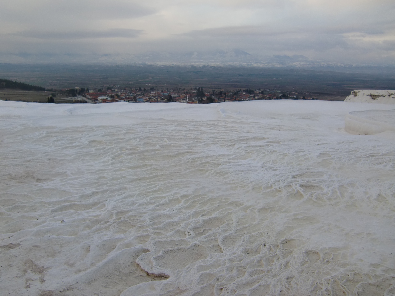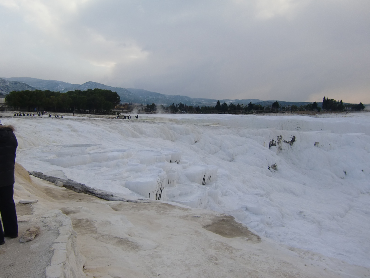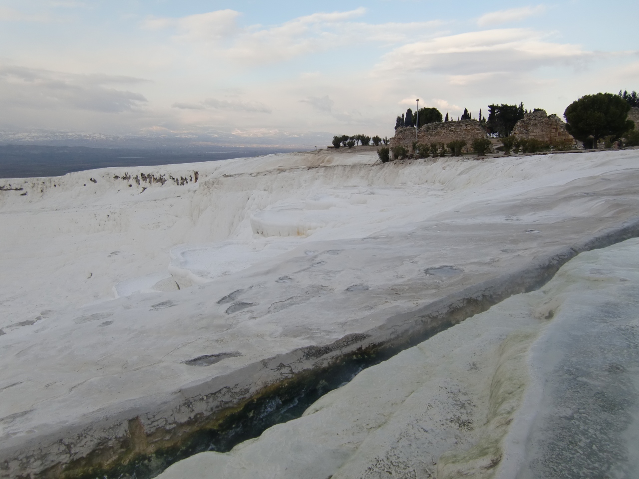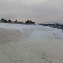 ただこの場所はヒエラポリス遺跡とも隣り合っているようで、添乗員さんの話ではわざわざその遺跡の観光をしなくても、この石灰棚とそこへ行くまでの道の回り全体がヒエラポリス遺跡だと言うのですが、、、前阪急トラピックスでここへ来た時はその古代の建物跡とかのいわゆるヒエラポリス遺跡には確かに立ち寄ってはいますが、今回のツアーでは近いにもかかわらず何故か古代遺跡跡には立ち寄ってはくれず残念でした。一応石灰棚の写真だけになりましたがいくつか投稿します。まだ肌寒い時期(2月後半)でしたが石灰棚のぬるい水は割と豊富にあったように思います。