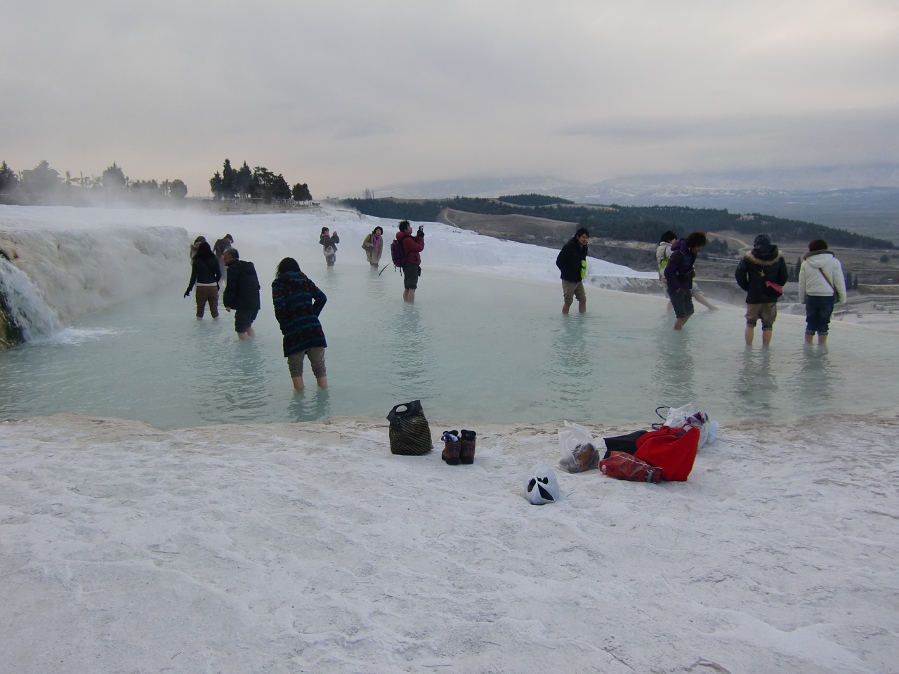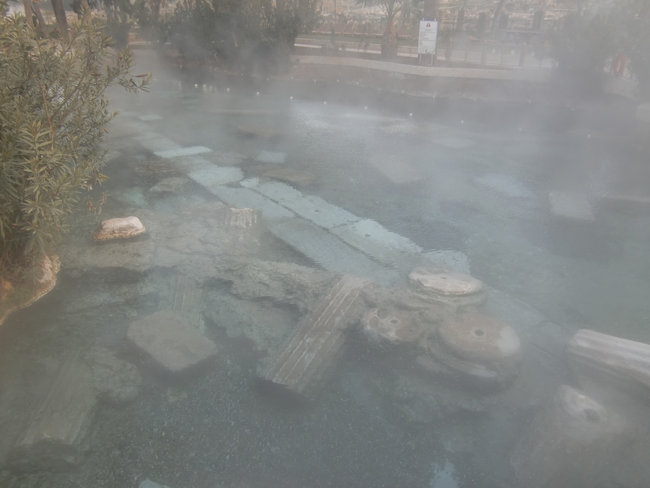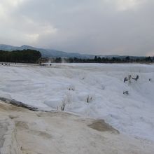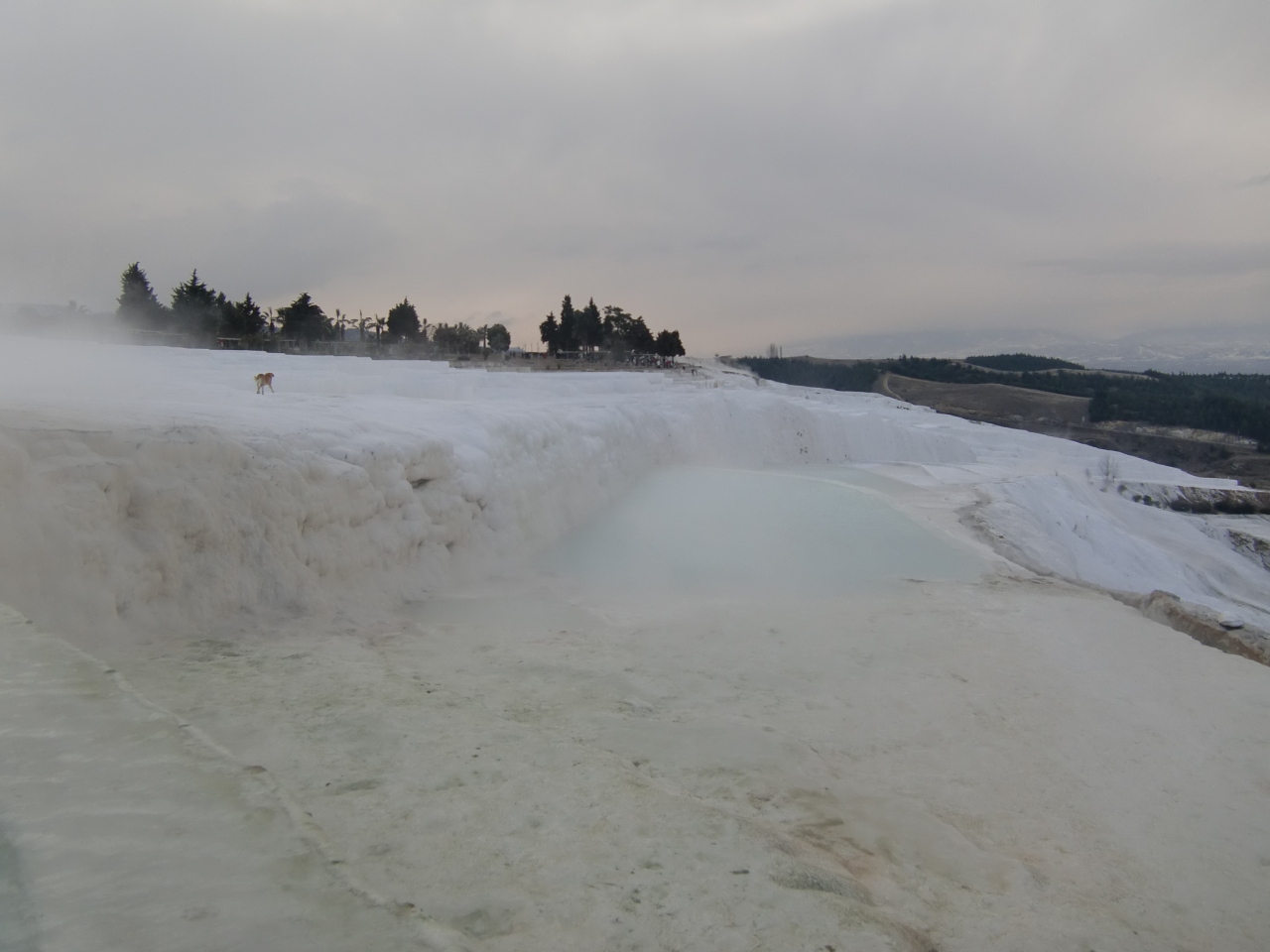 良く写真やTVとかで紹介される石灰の大きな段々があり、その上を青く光る水がたまっていると言う風景は残念ながら広範囲にはないようでした。