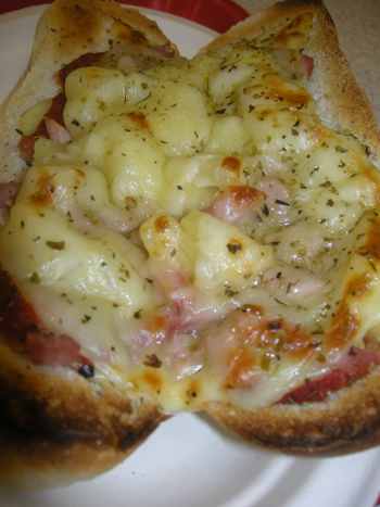かなり大きなカットのピザ1枚と、パンを開いて作ったピザを1つ