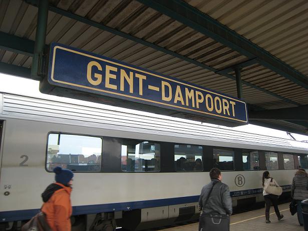 ブリュッセル南駅(Bruxelles-Mide)からゲント・ダンポールト駅(Gent-Dampoort)まで所要時間46分、途中、ゲント・聖ピーターズ(Gent-ST.Pieters)駅で乗り換えます。ゲント中心地へはダンポールト駅から歩いて行きました。帰りは聖ピーターズ駅からブリュッセル南駅まで乗り換えなしで戻れます。