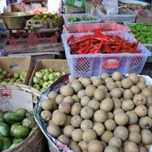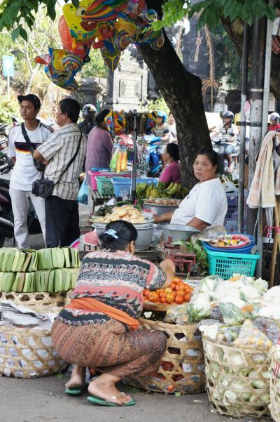 ジンバランは海の近くにあるため、魚市場とローカルの市場の2つの市場があります。今回はローカルの市場の散策へ出かけました。ここは、観光市場ではなく、100%地元密着型の市場なので、なんせ活気が違います! 果物もお野菜も元気そう...。食料品のすぐ横に衣料品を売っていたり、どこもかしこもすごい賑わいで圧倒されます。すぐ横の道路を、原付もトラックもすごい勢いで飛ばして来るので、気を付けて散策する必要があります。