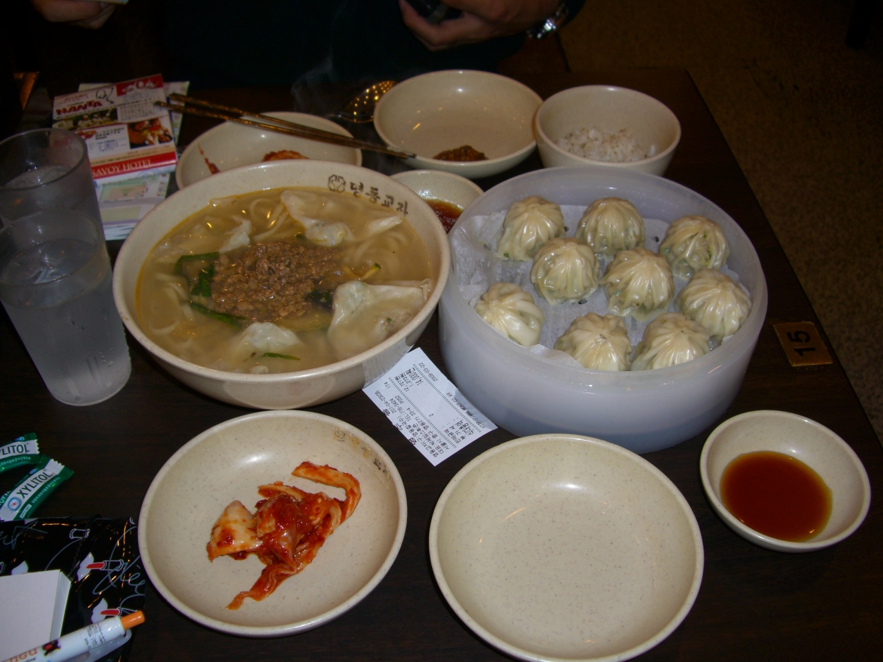 カルグクスの他にマンドゥとキムチのかかった麺(名前が思い出せない)を注文。