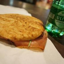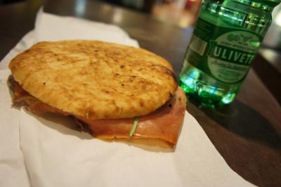 フィレンツェの空港は、本当に小さいのでいつも食べるところに困ります。いつもは、手荷物検査後、中で食べることが多いのですが、今回は1階のバールでランチをいただきました。生ハムとチーズのパニーニサンドをオーダーしたら、あつあつに温めてくれて、これが思ったよりずっとおいしくてびっくり!空港1階は、座るスペースも少なく、ここは絶好の休憩ポイントになるのでオススメ。