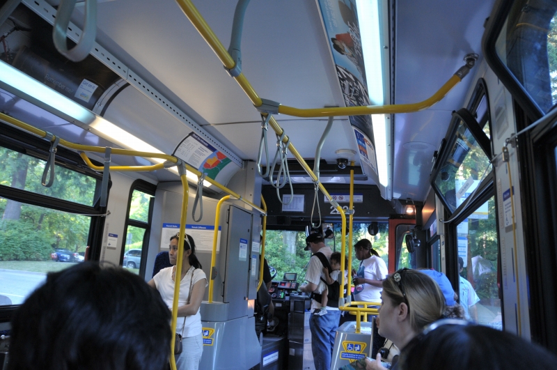 途中で降りる場合は窓にぶら下がっている銀色の紐を引っ張ると「次ぎ止まります」ランプが点灯するようになっています。次に止まるバス停の案内は一切無いので、不安な場合は運転手にどこまで行くのかを伝え、降りる場所が近づいたら教えてもらいましょう。