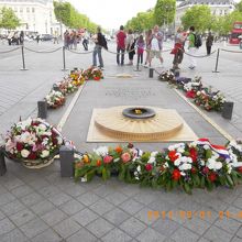 で凱旋門の下で彫刻を良く見てみるのもいいですが、足元に”無名戦士の墓”があって
