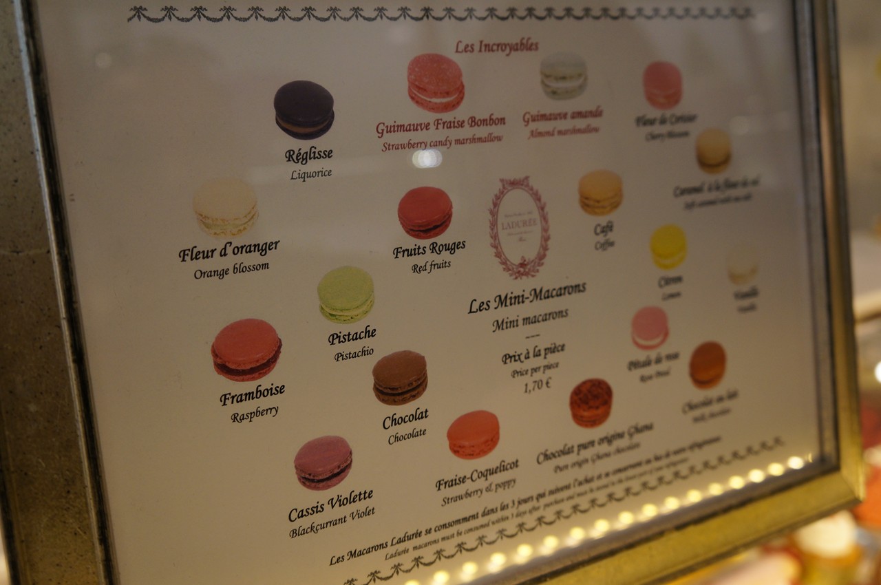 ド定番ではありますがやっぱりラデュレですね。パリオペラ座より程近く、パリではバケットやマカロンをつまみながら街をブラブラしている人も良く見かけますし、見習って真似してみました。