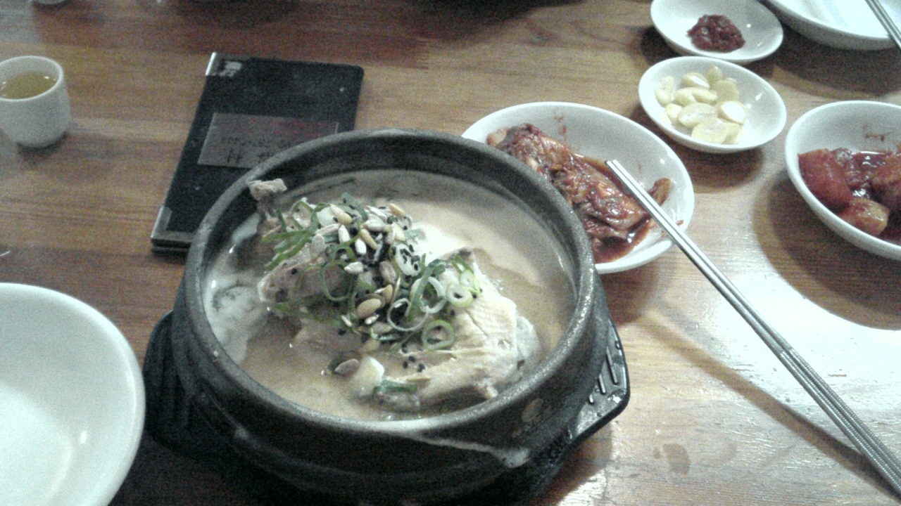 ここはやっぱり美味しいです。自分で塩加減を調節して食べますが 塩が美味しいのです!それにここのカクテキがとっても気にいって壺を空にしてしまった!(笑)しかし8000ウォンから毎年のように値上げして今15000ウォン?少し前はたしか13000ウォンだった気がします!