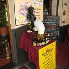 2年に一度、8月に開催されるグラン・プラスのフラワーカーペットの日に訪れたので大勢の人で賑わっていました。レストランが立ち並ぶイロ・サクレ地区を歩いていると、店先にビール小便小僧がいました!像の前にはレフやチェリービール等が置かれ、ベルギービールの宣伝でしょうか。