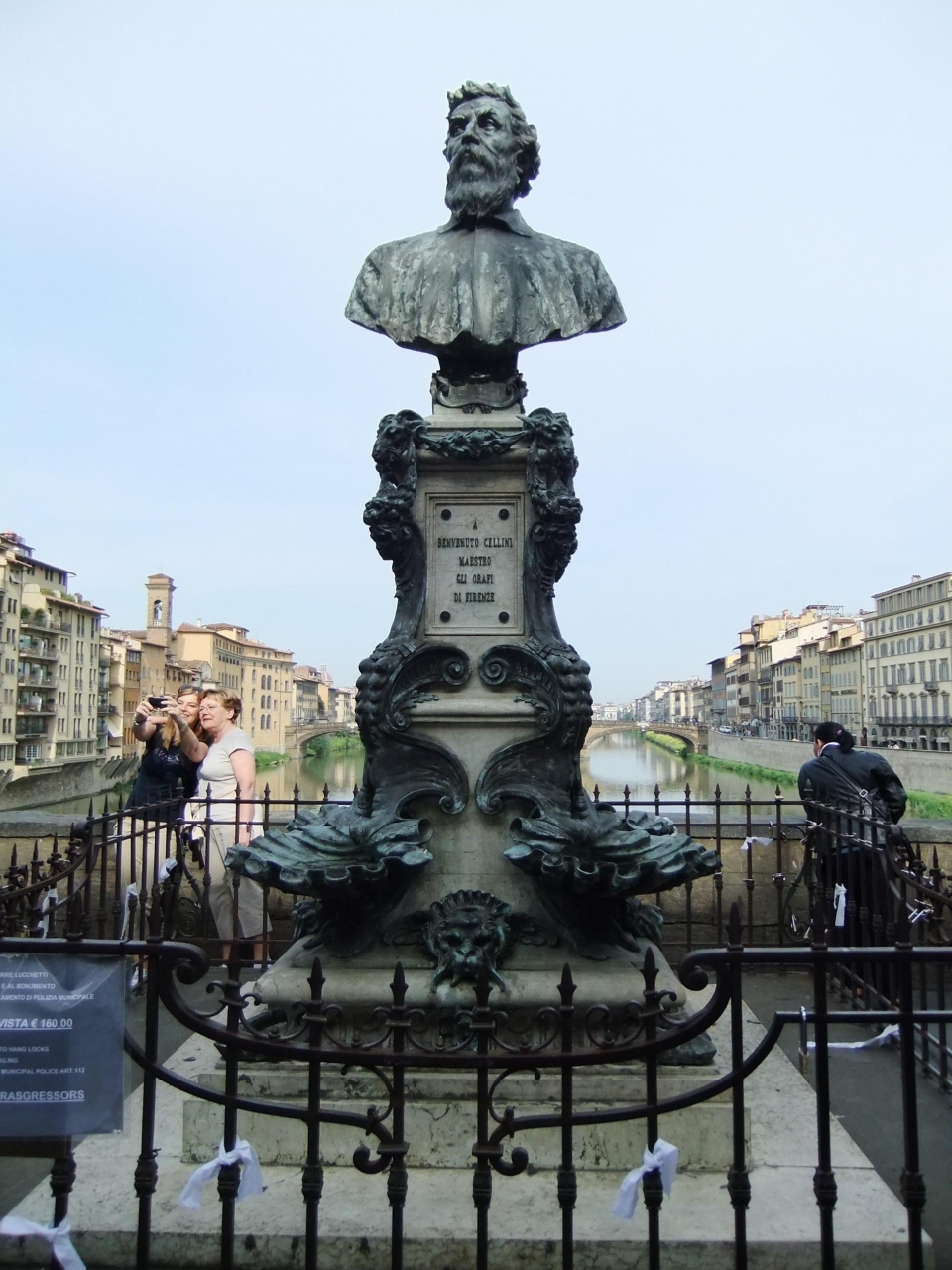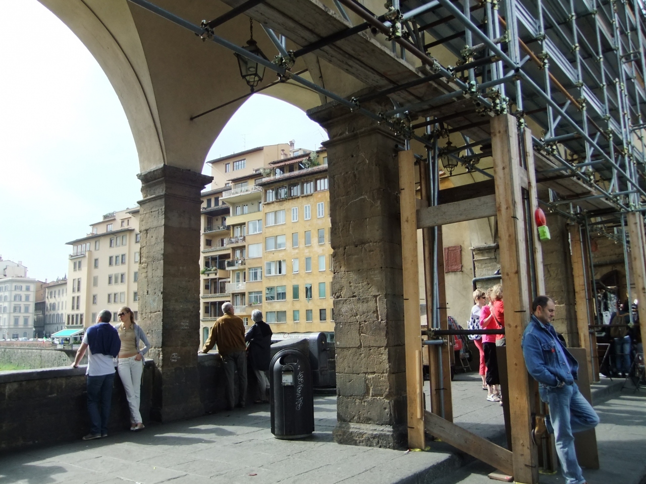 - 橋の中央部はアルノ川を眺める人や写真を撮る人で混雑しています。
