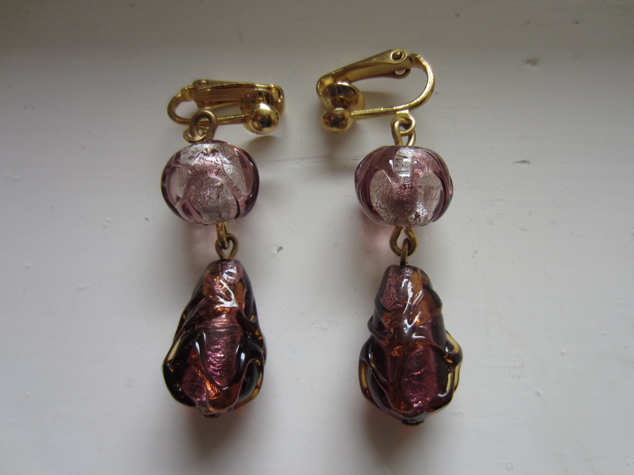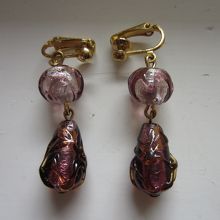 元々、ピアスだったのですが、店員さんがその場ですぐに金具(金メッキ)をイヤークリップに変えてくれました。ガラスの中に銀箔や金箔が入っていて、光を反射するとキラキラしてすごくきれいです。