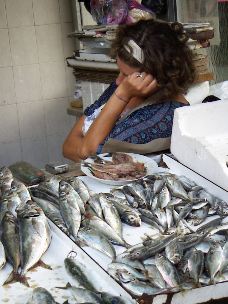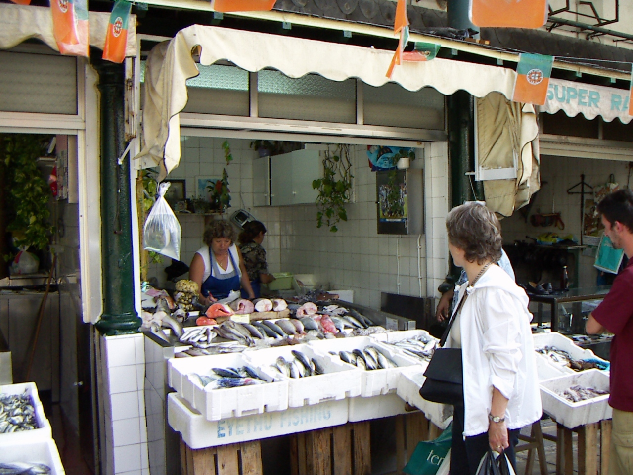 生鮮食料品の品ぞろえは一番のようです。 一通り見物したあと、市場内の食堂で昼飯を食べるのも良いでしょう。 定食にワイン(なぜかジョッキででてくる)がついています。