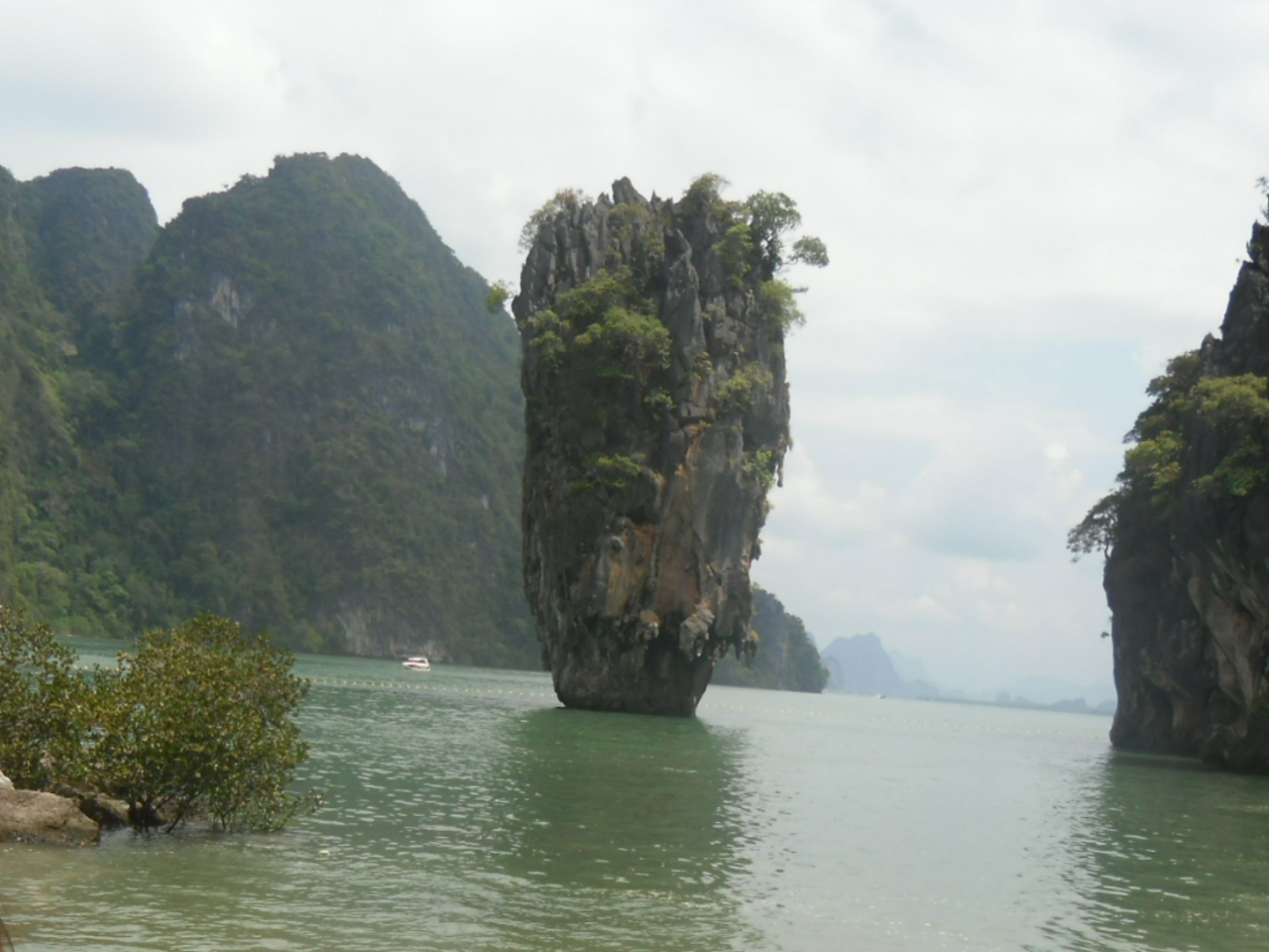 港から細い崖道を登り降りしジェームスポンド島を正面に望むビーチに行く。そのビーチが007「黄金銃を持つ男」のロケ地らしく、ビーチ横の切り立った大きな岩崖が悪人の要塞に見立て撮影されたとか。